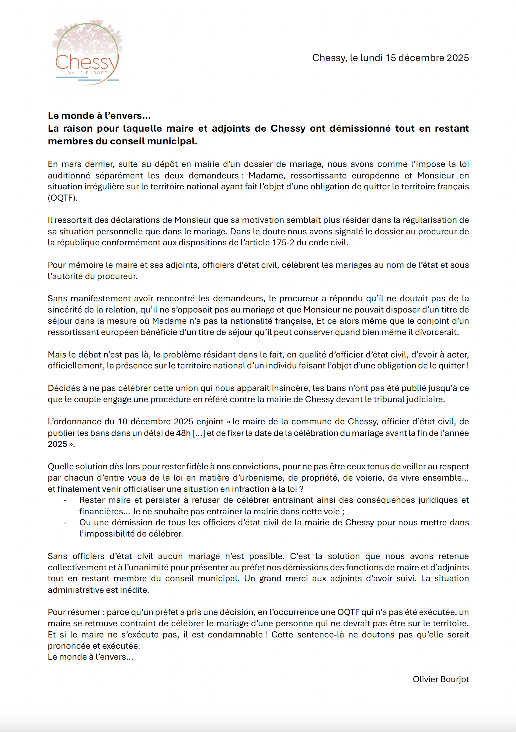 Suite à la démission du maire et de ses adjoints, vous trouverez ci-dessous un communiqué expliquant les raisons de cette décision.