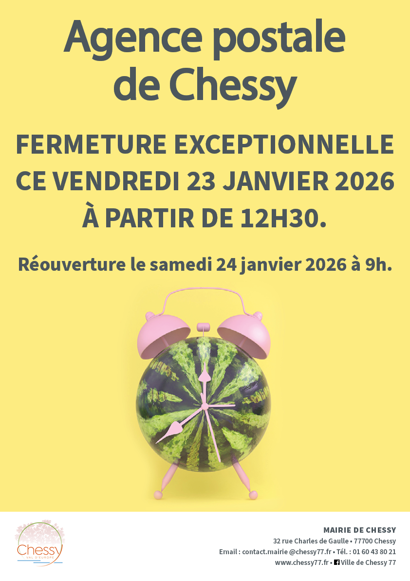 Accueil » Les actualités de chessy » Fermeture exceptionnelle de l’agence postale ce vendredi 23 janvier 2026 après-midi